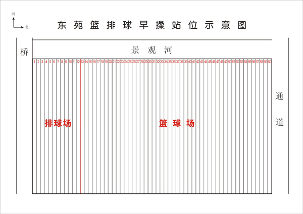 2、 东苑篮排球场共有列队区域60个: