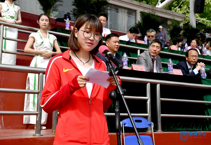 刘伟庆副董事长宣读《关于表彰2016年度体育工作先进集体、先进个人和优秀教练的决定》。校领导为获奖者颁奖。现役中国国家田径队队员、经济与管理学院会计1602班伏娜同学代表全体运动员宣誓。