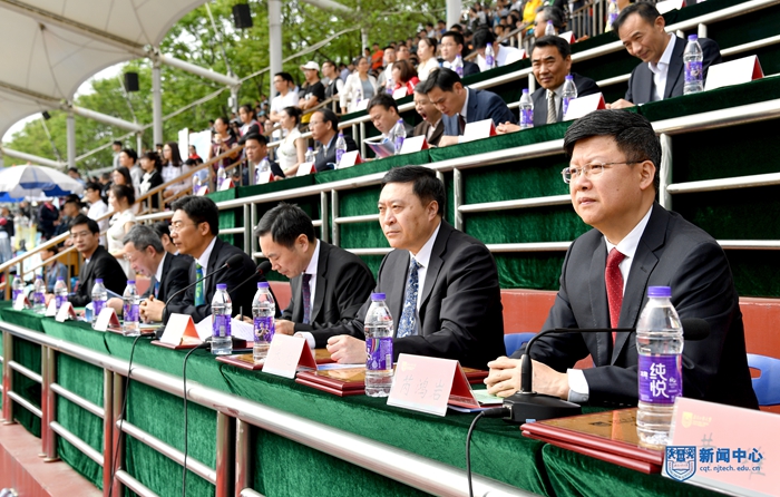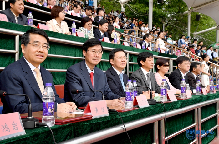 4月21日上午,校第十五届运动会在江浦校区田径场隆重开幕。校领导芮鸿岩、黄维、刘伟庆、乔旭、蒋军成、崔益虎、张进明,校体育运动委员会全体委员、全体运动员、裁判员及离退休同志代表等出席开幕式。崔益虎副董事长主持开幕式。