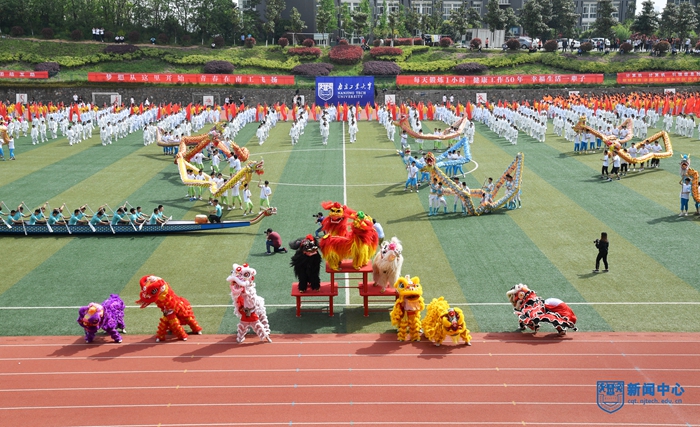 运动员退场后,1300多名员工带来了大型文体表演《春回威廉希尔中文网站》。律动的音乐、优美的舞姿、精深的太极、欢腾的龙狮、飘扬的红旗,描绘出一幅幅春回大地、花开威廉希尔中文网站、万物生长、蓬勃向上的青春画卷,象征着全体师生奋勇前进,投身“双一流”建设的昂扬斗志和坚强决心!
