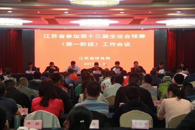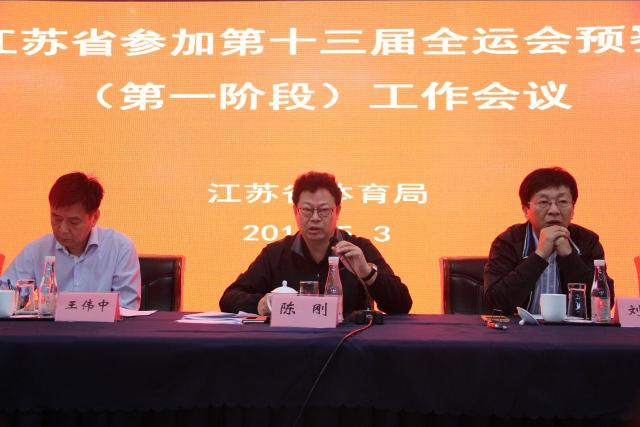 5月3日,江苏省体育局召开参加第十三届全运会预赛(第一阶段)工作会议。江苏省体育局局长陈刚,副局长刘彤、王伟中,巡视员高林,副巡视员陈柏,南京体育部经理杨国庆,副经理蒋宏伟、肖爱华出席本次会议。南京、苏州、常州、无锡市体育局分管领导和训练部门负责同志,南京体育部、省属各训练单位、省体科所负责人,局机关有关处室、青少年训练与反兴奋剂管理中心主要负责人,省优秀运动队领队、一线主(总)教练等参加了会议。会议由陈柏副巡视员主持。