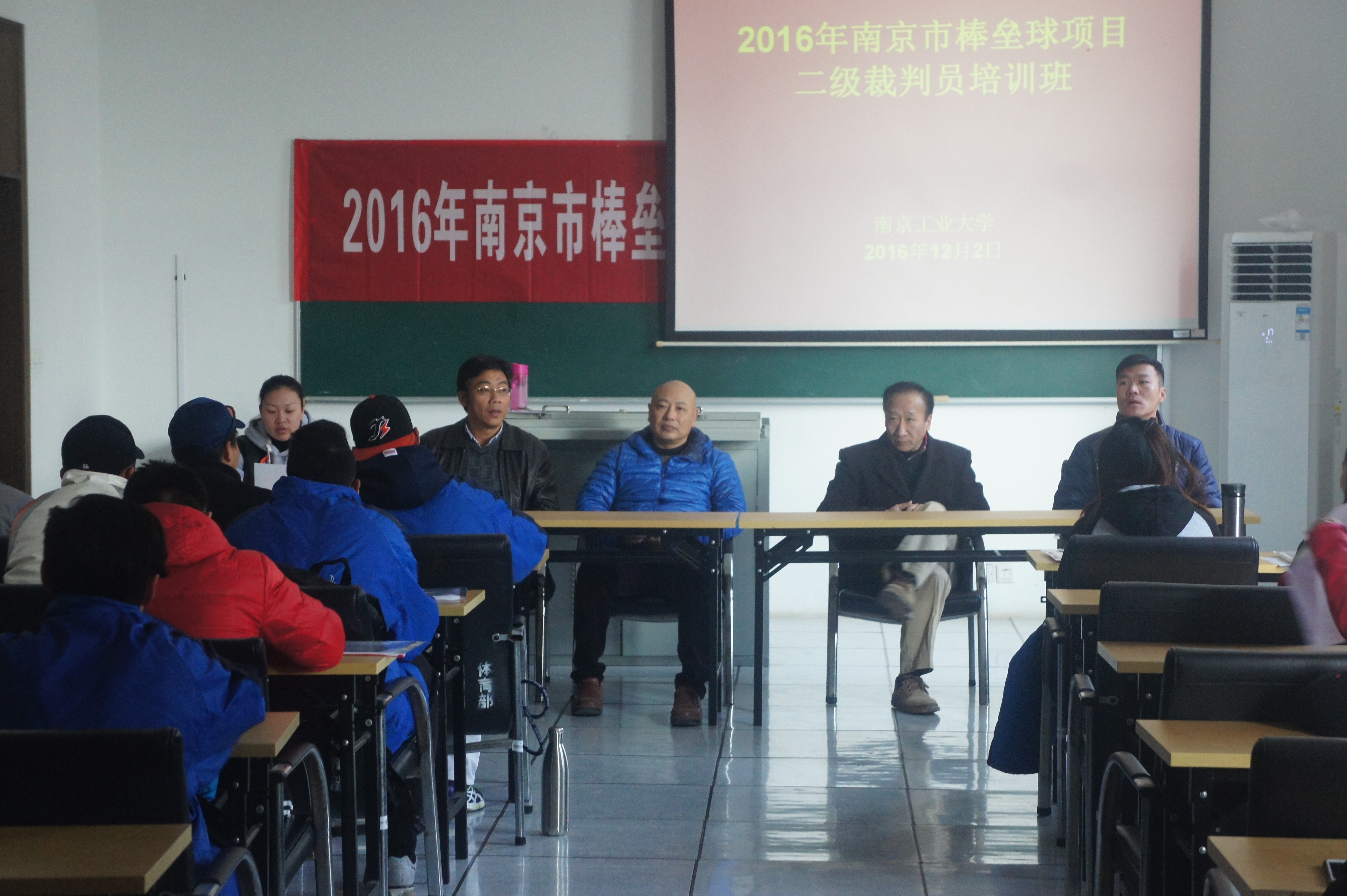 12月2日上午9:00,在江浦综合馆三楼会议室进行了开班典礼,出席典礼的嘉宾有:江苏省南京市体育局竞赛管理中心陈宁科长;威廉希尔中文网站体育部主任、垒球国际级裁判张天峰教授;威廉希尔中文网站体育部办公室主任、垒球国际级裁判陈军老师;江苏省棒球协会裁判长李宇教授;江苏省棒球协会副裁判长周华卫老师;南京体育部、垒球国际级裁判解鑫老师。