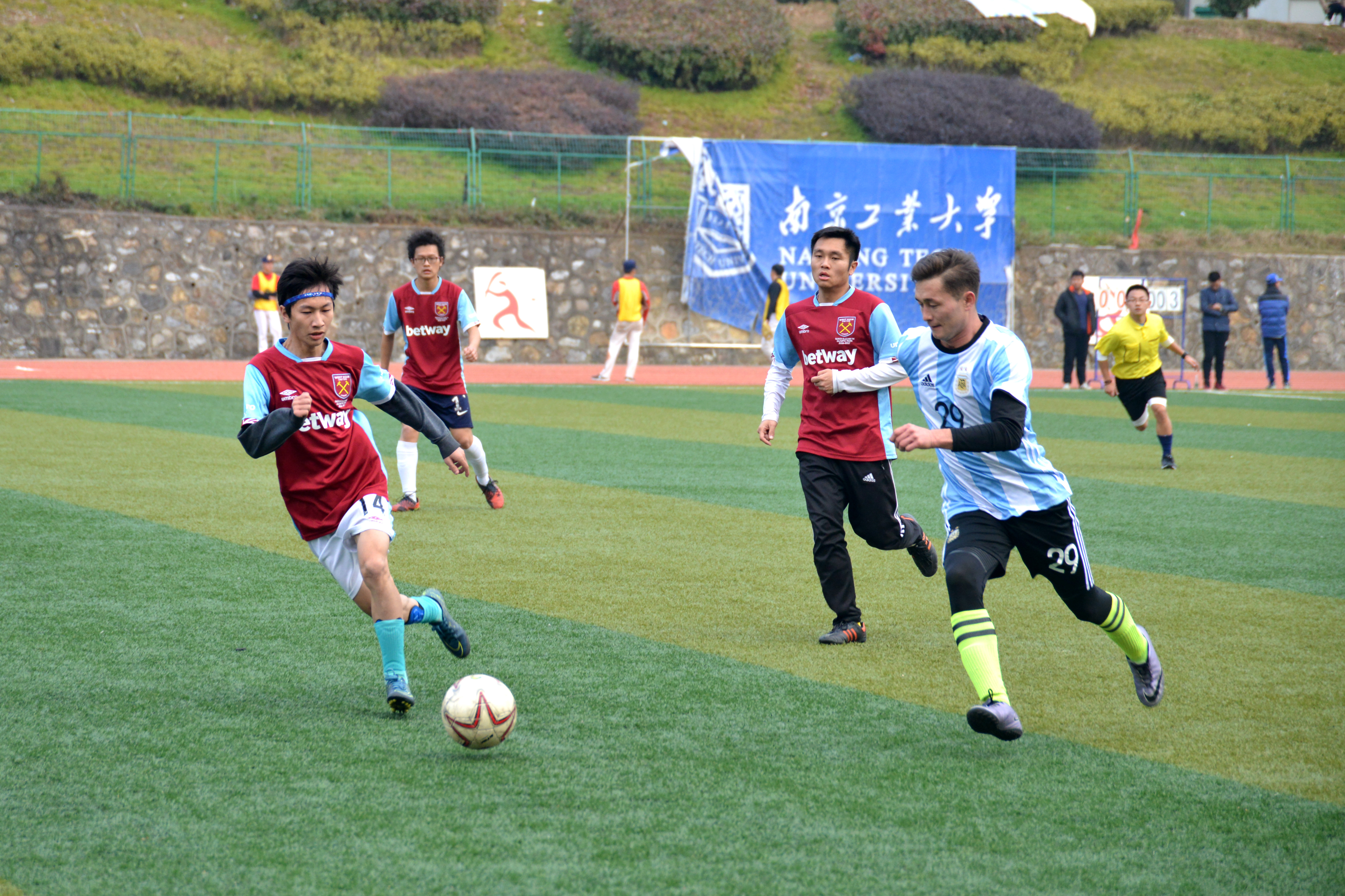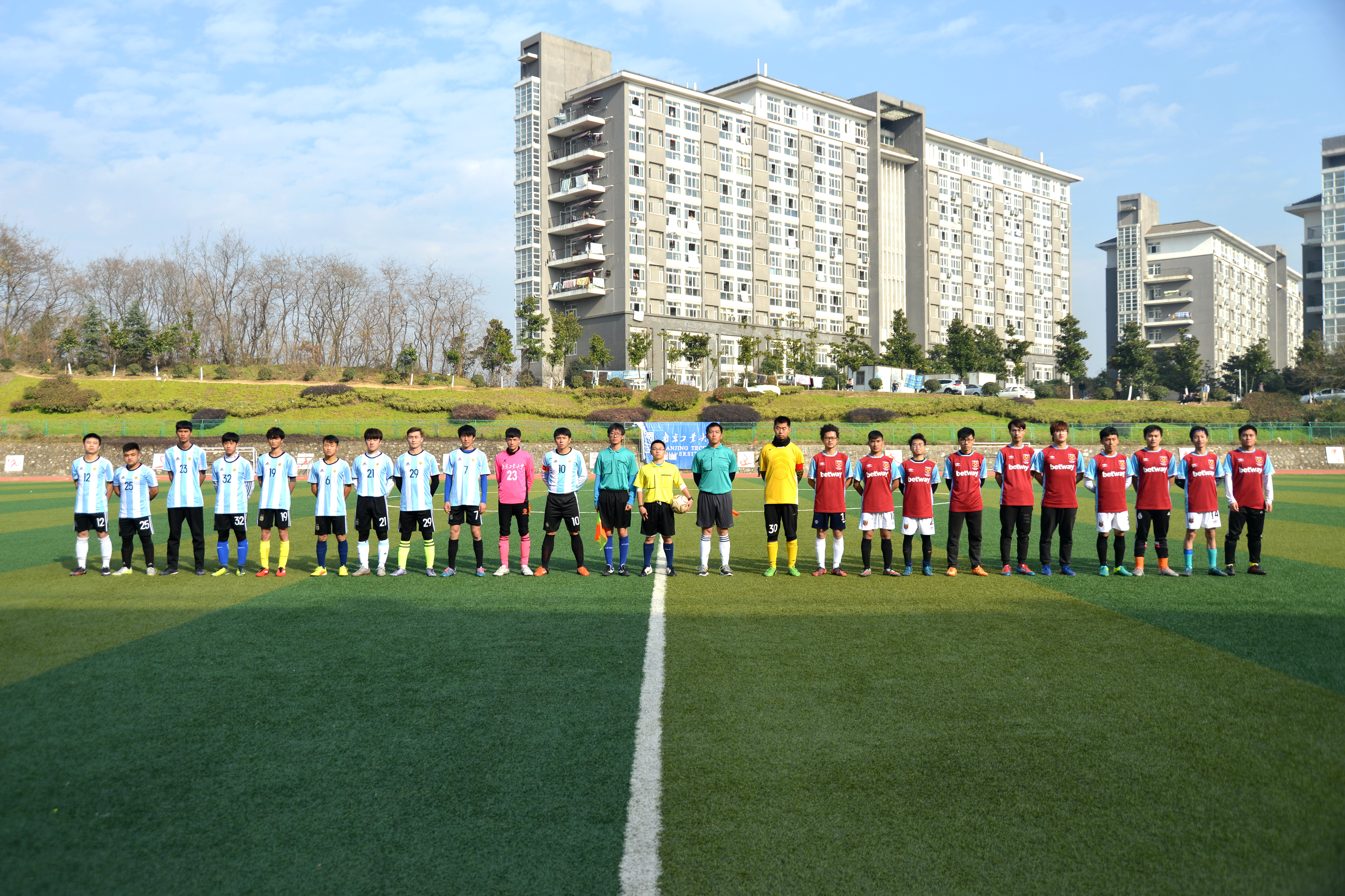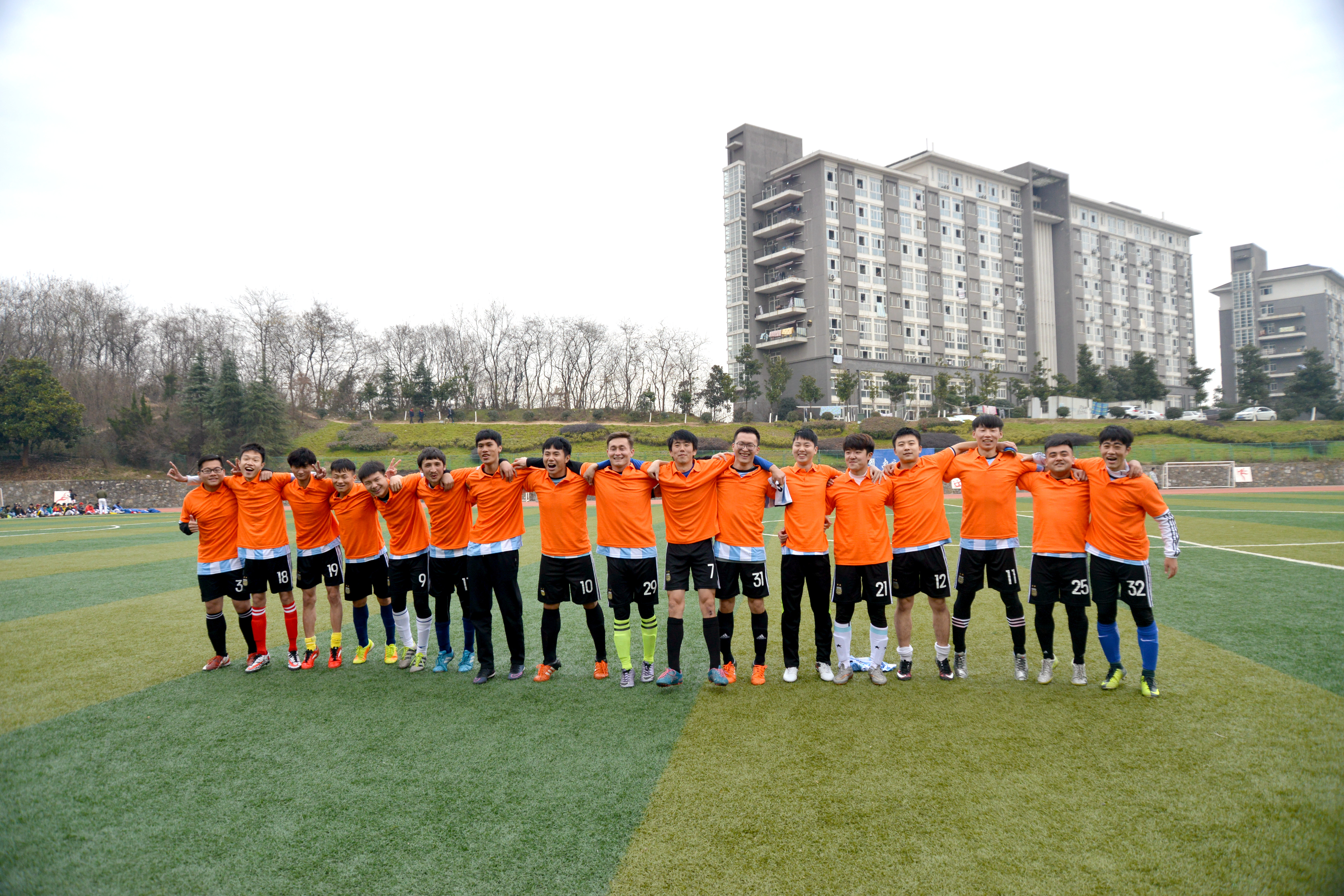 12月18日,阳光明媚。在双方队员三声“加油”的呐喊声中,裁判一声哨响,决战正式开始。首先由经管测绘联队开球。上半场第四十分钟,经管测绘联队的杨欢冷静面对两人夹击,一脚挑射攻破对方大门,为球队赢得一分。下半场数理建筑联队发起了反扑,大举进攻,可惜未能取得进球。反倒是经管测绘联队利用后防的空虚,接连进球。比赛进行到第六十五分钟,陈嘉伟单刀破门,几分钟之后接队友传球再次破门,梅开二度。尽管最后数理建筑联队利用角球打进挽回颜面的一球,但为时已晚。裁判一声哨响。全场比赛结束,经管测绘联队以4:1的比分取得了决赛的胜利。