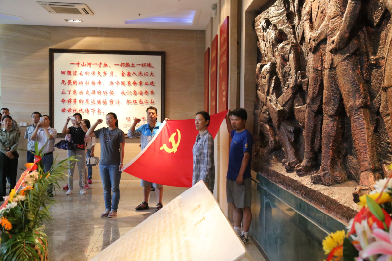 6月30日,为庆祝中国共产党成立95周年、红军长征胜利70周年,深入开展“两学一做”学习教育,体育部党总支率领全体党员和入党积极分子来到著名革命老区金寨开展“缅怀革命先辈、坚定理想信念、争做合格党员”主题党日活动。