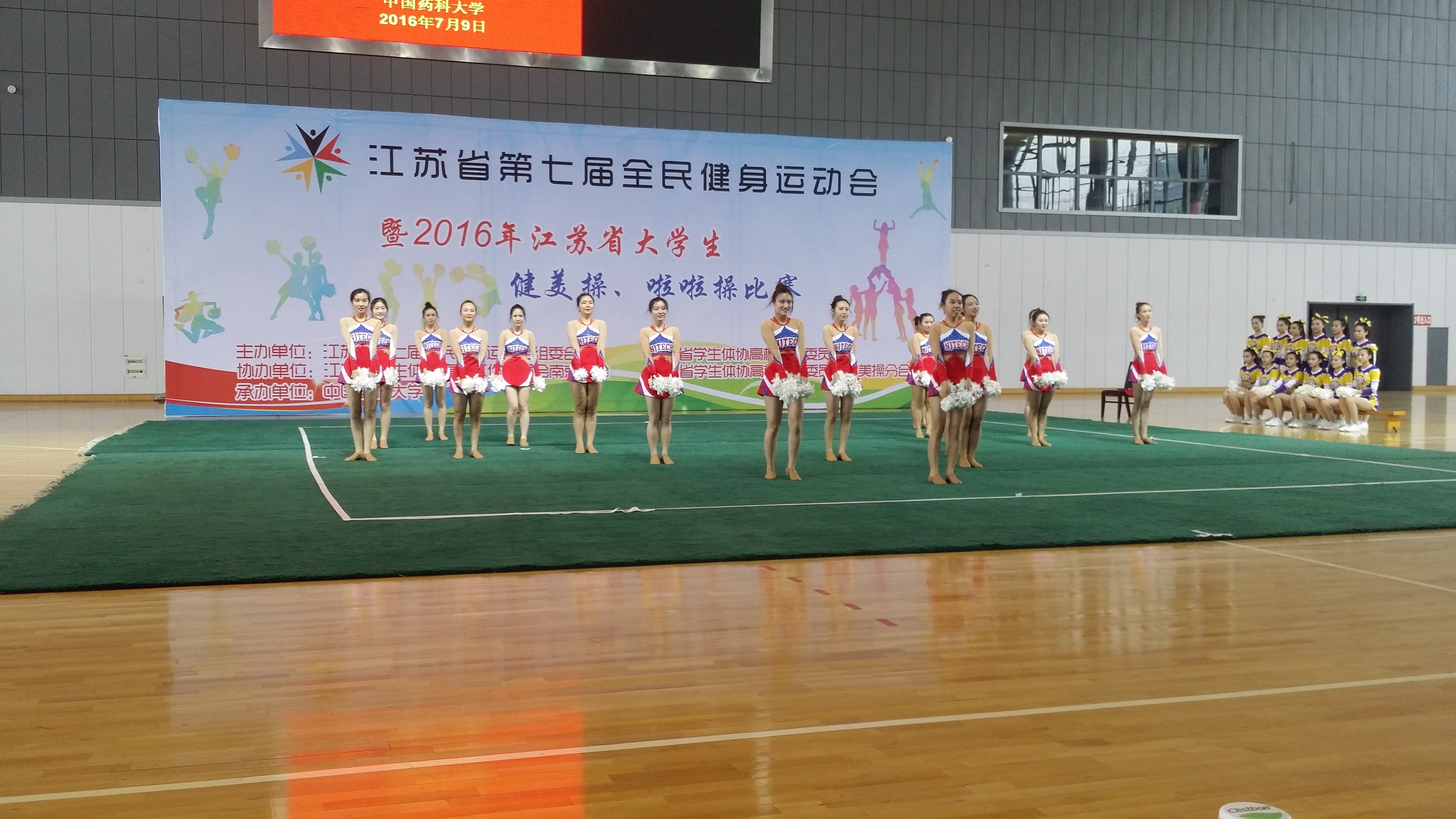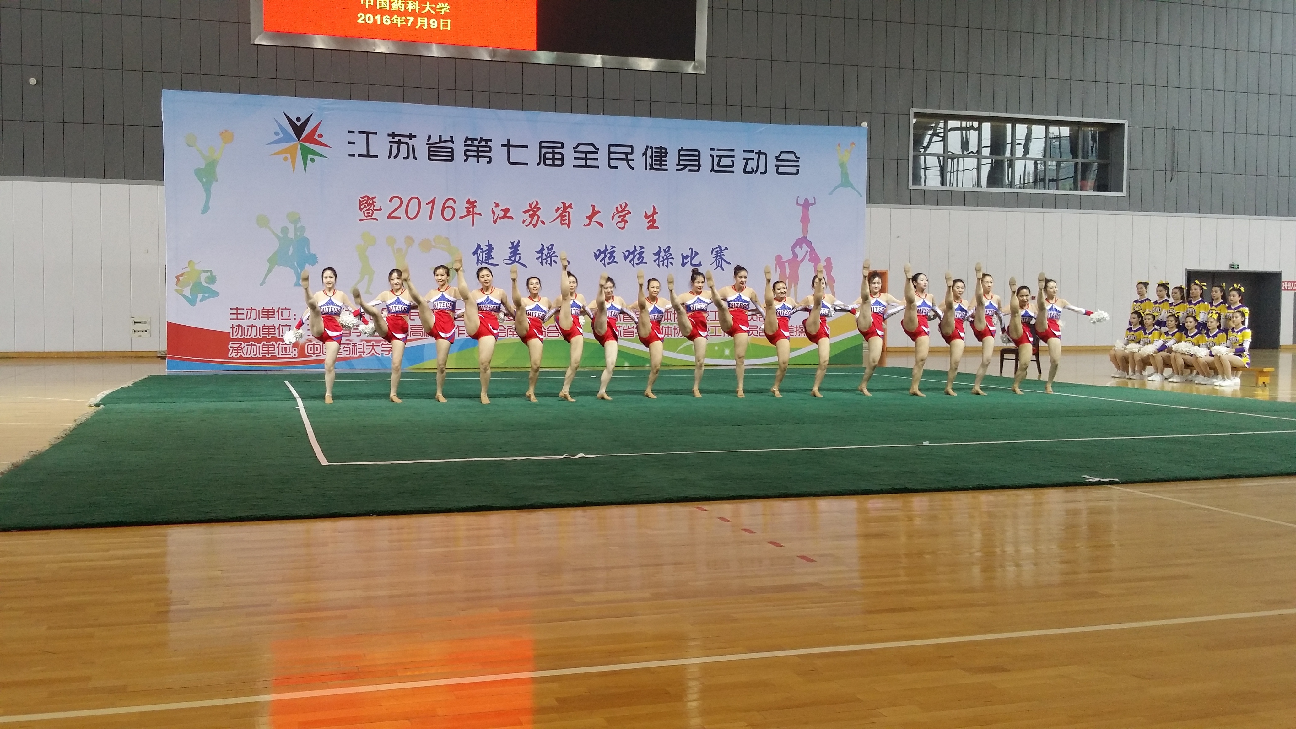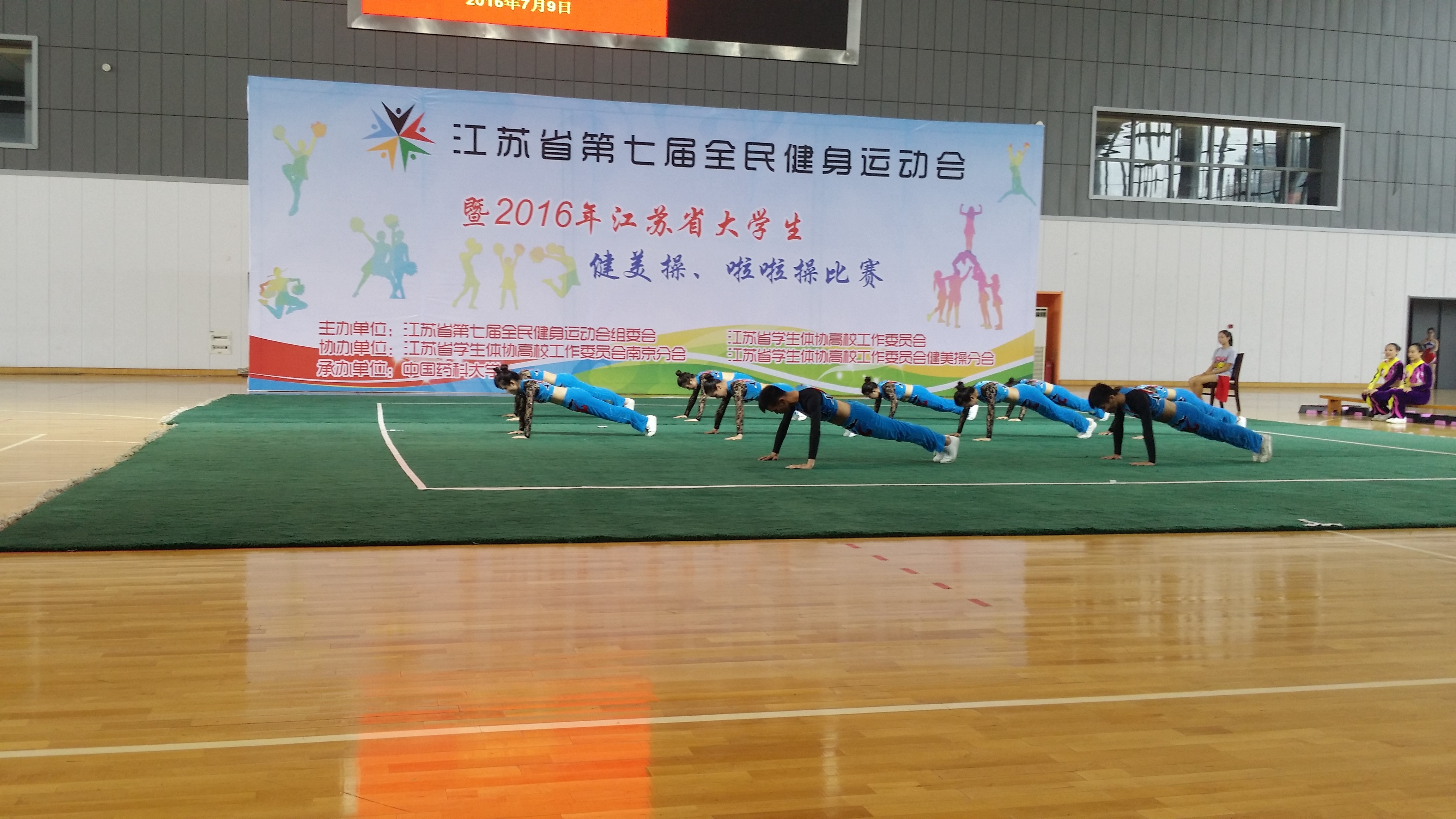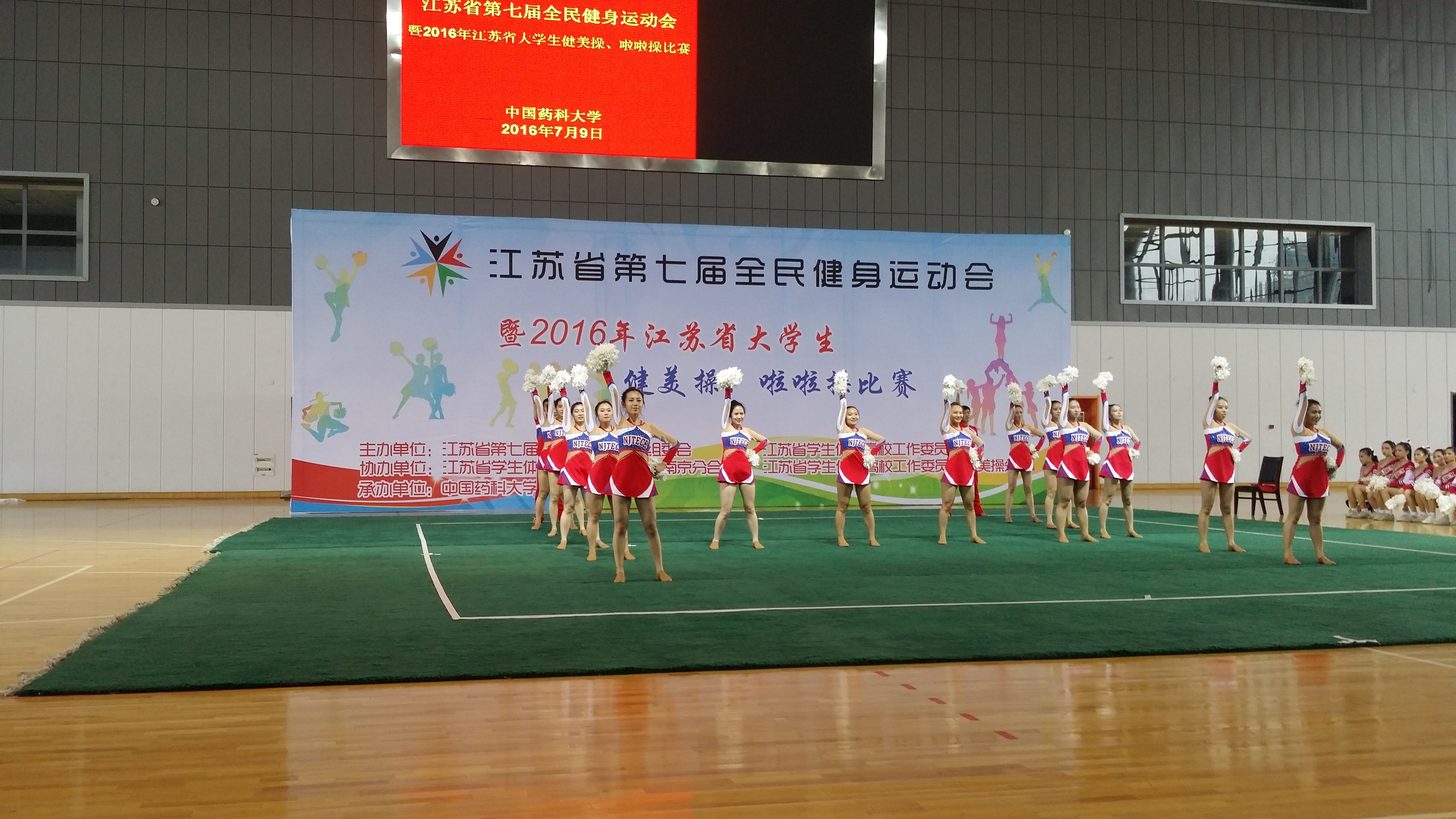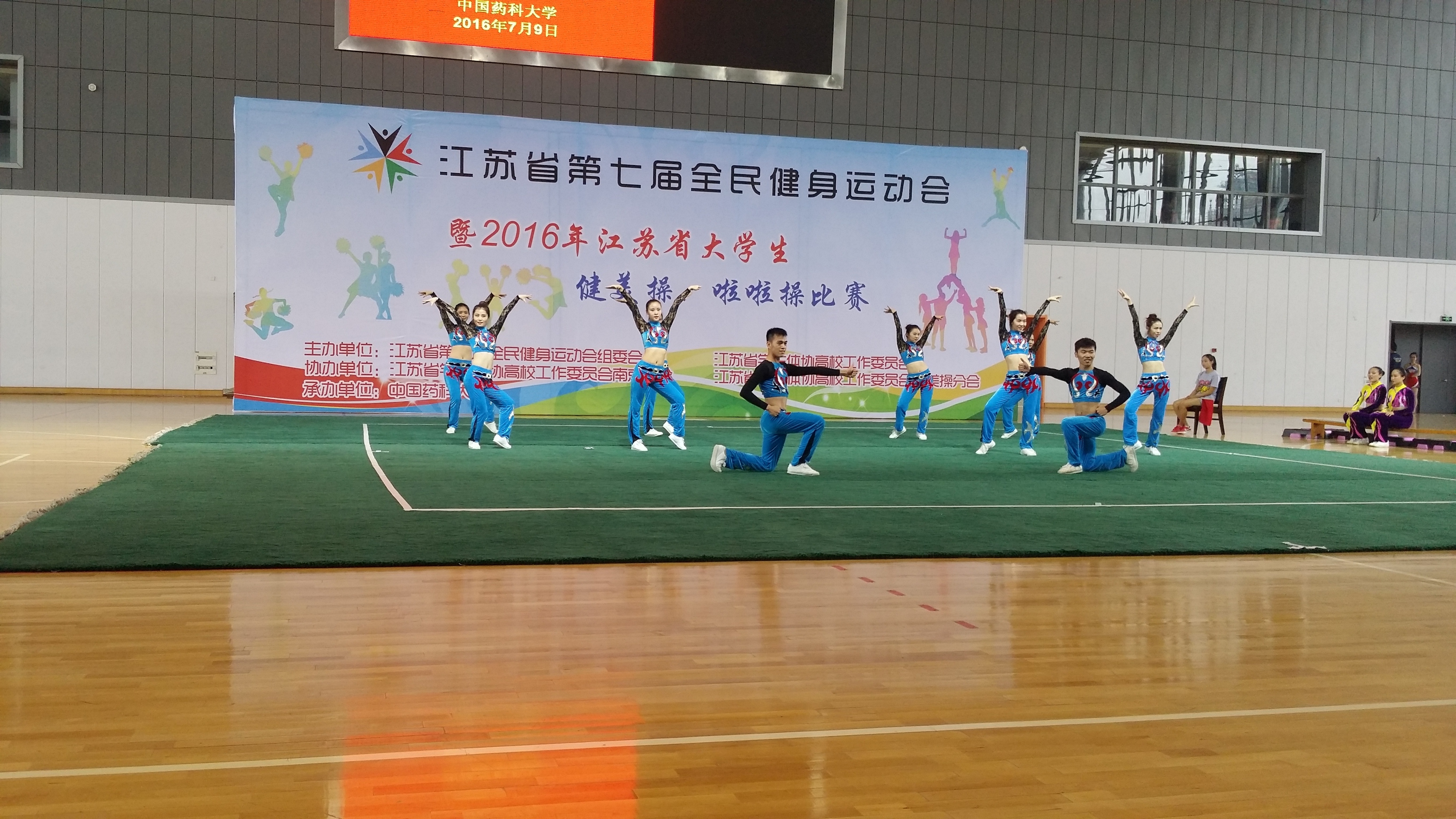 7月8日至9日,江苏省第七届全名健身运动会暨2016年江苏省老员工健美操、啦啦操比赛在中国药科大学江宁分校举行,公司健美操队在王佳玥、薛敏老师的带领下,和兄弟院校展开了激烈的角逐,最终,公司健美操队喜获有氧舞蹈第一名、大众健身操第一、男子单人操第一名,花球啦啦操规定套路第二名,花球自编动作第二名的好成绩。