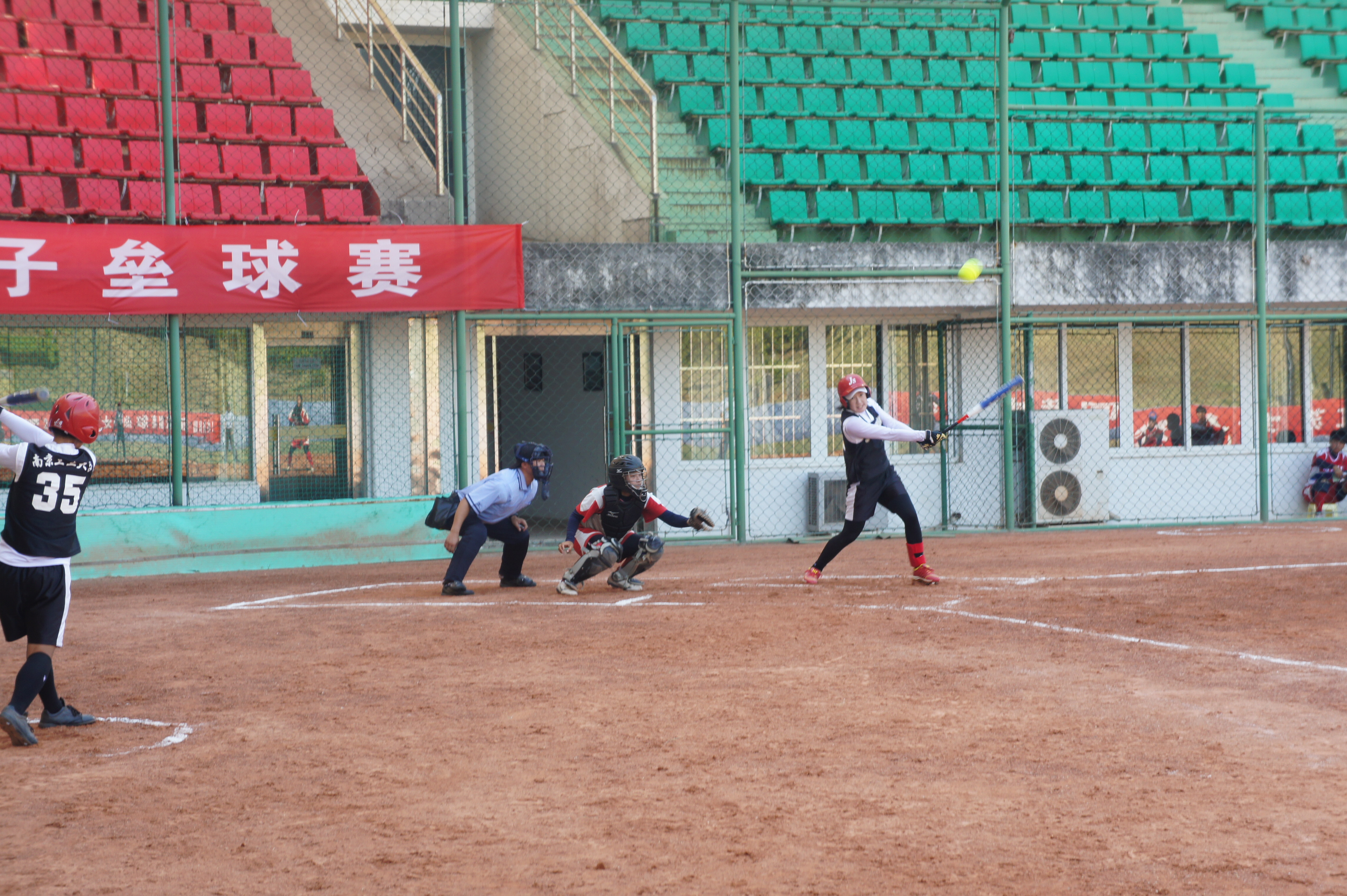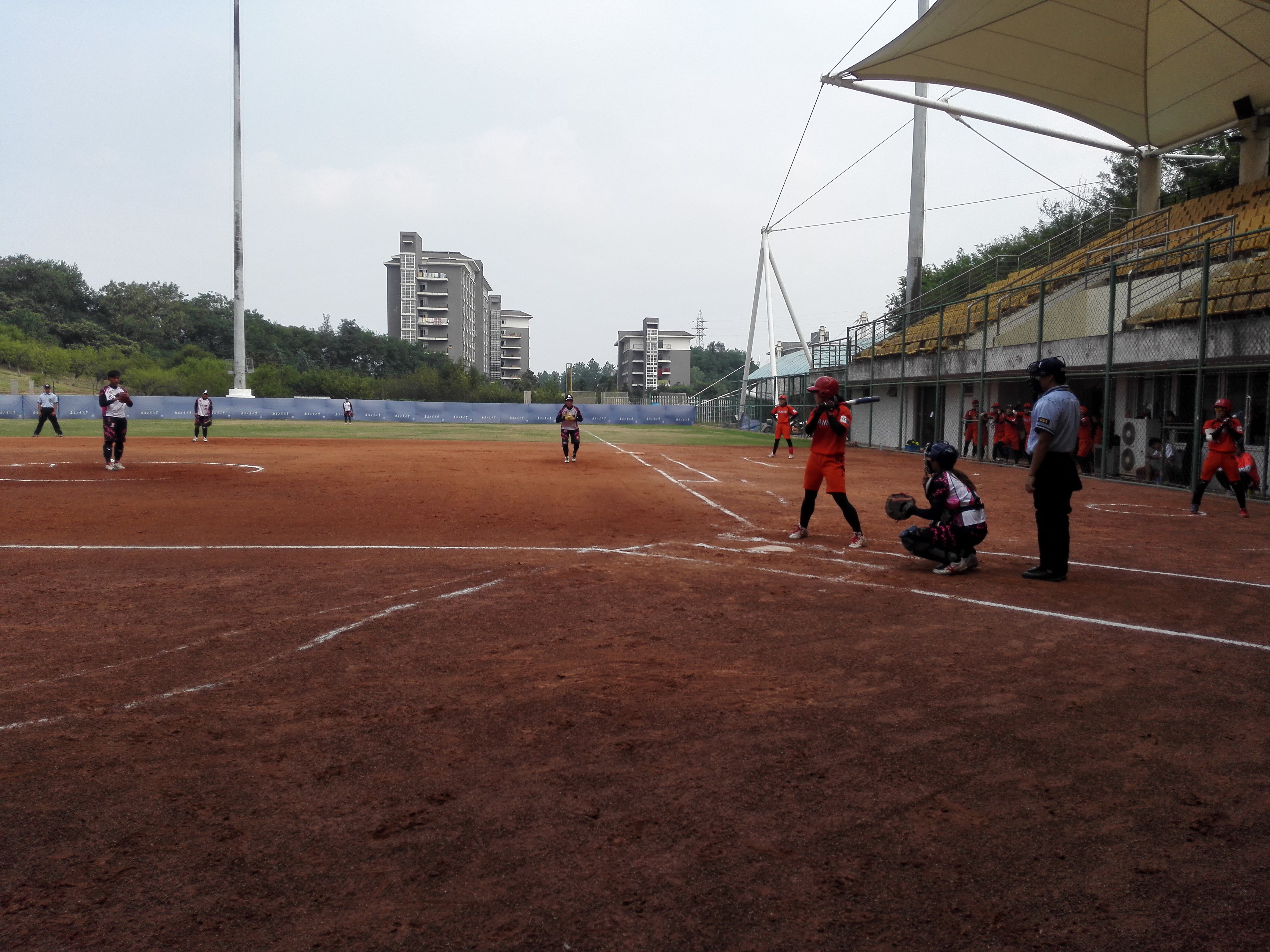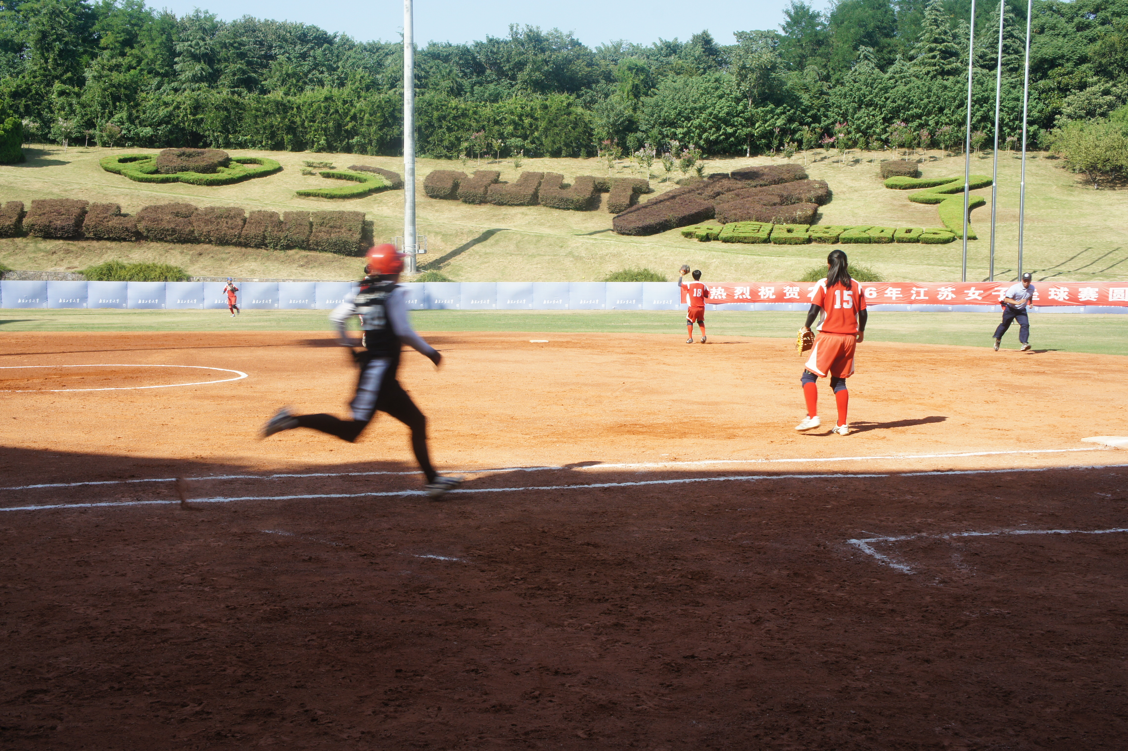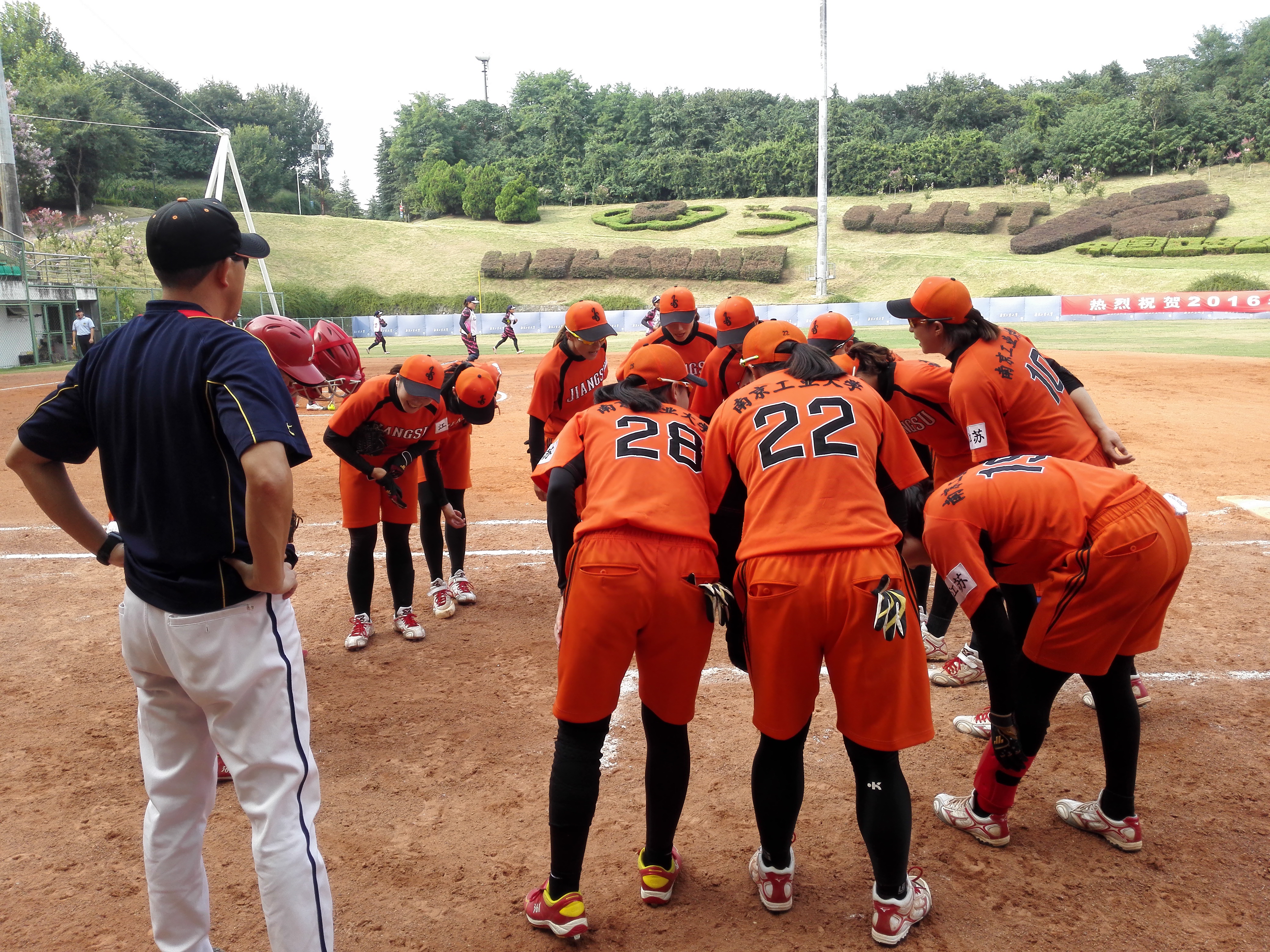 由江苏省棒垒球运动协会邀请,台湾南投县埔里高工、暨南国际大学垒球队、江苏女子垒球青年队、威廉希尔中文网站江苏女垒共四支球队于8月22日至8月27日进行了为期6天的交流比赛。比赛由江苏省棒垒球运动协会主办,威廉希尔中文网站、国家棒垒球协同创新平台承办。比赛期间是南京最热的季节,地面温度大约40度,双方队员顶着烈日,比赛中都全力以赴。球员在比赛中比拼搏精神、比团结协作、比良好球技。比赛精彩、激烈、友谊、和谐,达到了锻炼队伍的目标。