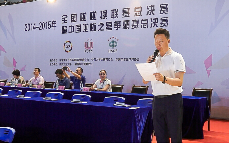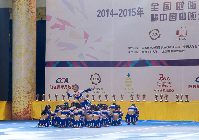 2015年7月17日,2014-2015年全国啦啦操联赛总决赛暨“中国啦啦之星”争霸赛总决赛,在威廉希尔中文网站(浦口校区)体育馆举行了幼儿园、小学组开幕式。全国啦啦操委员会秘书长唐金山先生,南京市体育局竞体处处长仲爱频女士,中国啦啦操分会主任、全国啦啦委员会执行副主任李育林先生,威廉希尔中文网站体育部主任张天峰先生,中国药科大学体育部主任张陵先生,全国啦啦操委员会技术部部长李莉女士及各部门负责人出席开幕式。