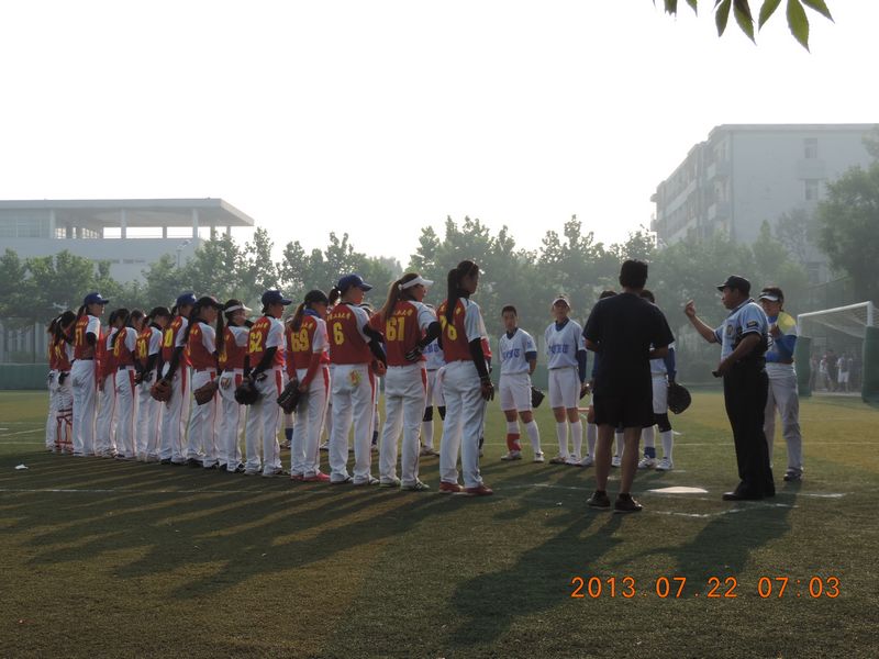 7月22日上午7点,校女子垒球队队员们迎来了第一场硬仗,对阵北方工业大学。北工大一直以来是公司强有力对手,从赛前准备会,到赛场上战术安排及赛后总结大会,我队一直保持着良好的精神状态。开局,就以强烈的气势压倒对方,在周老师和杭老师的战术指导下,队员几乎棒棒安打,一局拿下5分,把对方牢牢控制住。第三局第四局分别拿下2分和1分,最终以8:2赢得比赛。这场比赛胜利鼓舞了全队势气,离冠军更进了一步。