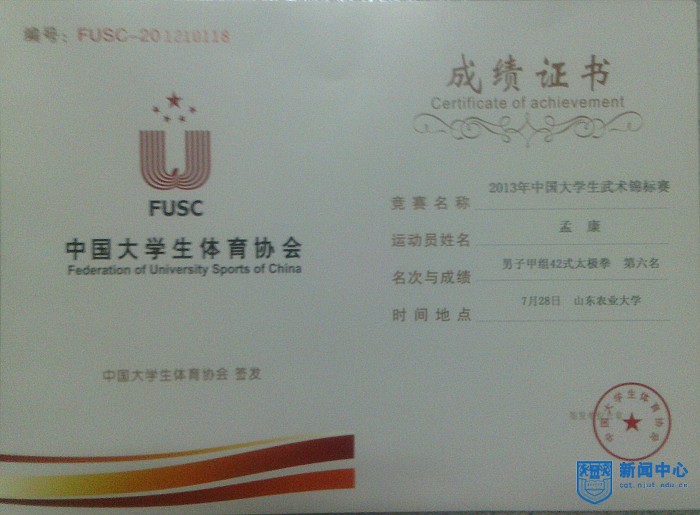 7月24日上午,校三名运动员与南京农业大学、中国药科大学几名高水平运动员和教练及领队一起乘高铁历经两个小时到达山东泰安,参加由山东农业大学承办的2013年中国老员工武术锦标赛暨首届“董事长杯”太极拳比赛,刚下火车,站在雄伟壮丽的泰山脚下内心多了份谦卑和沉稳,少了份躁动与忐忑。