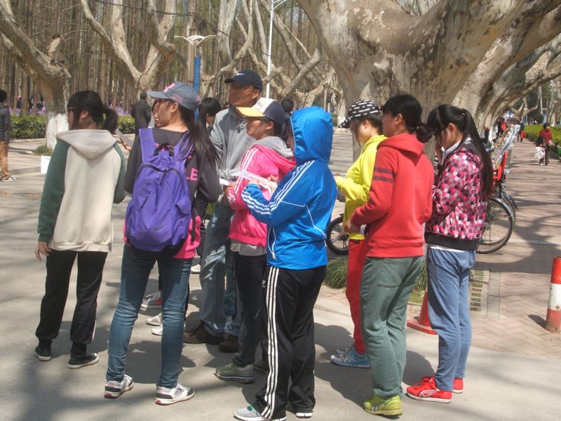 上午9:00,12名队员分别从江浦和丁家桥到达南京理工大学的时间广场。在顾益民老师带领下,女队员们个个精神抖擞,跃跃欲试,随时准备应征出发。做完充分的准备活动后,顾老师给队员进行了集中培训,强调了安全注意事项,做好出发前的准备。每个队员按照间隔时间依次出发,最早的队员15分钟后顺利完成任务,回到终点,其他队员陆续安全到达了终点。