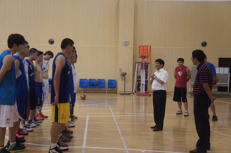 高明副书记、副董事长观看了队伍训练后,发表了热情洋溢的讲话。首先回顾了这些年公司男子篮球队取得的成绩,对大家做出的努力给予了充分肯定,感谢全体队员和教练员在平时训练和比赛中付出的汗水,并表达了校领导对大家的殷切期望和重视,高书记勉励大家在接下来的CUBA预选赛中,团结一致,在教练指导下,认真备战,为校再创佳绩。(来自体育部)