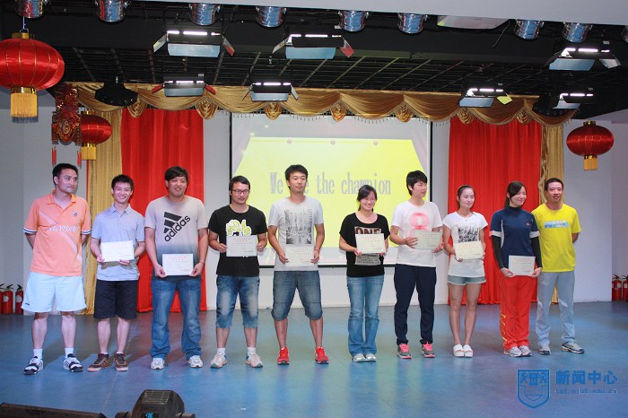 6月11日晚6:30,由体育部、校团委主办,经管学院承办的第八届垒球文化节暨第六届垒球联赛颁奖典礼在老员工活动中心隆重举行。出席本次活动的嘉宾有宣传部部长郭万牛,校团委书记童毛弟,体育部党总支书记陈建华,体育部主任张天峰,员工处副处长杨琦,经管公司党委副书记顾永东,体育部办公室主任孙欣荣老师、群体活动中心主任赵飞老师、棒老员工棒垒球队领队陈军、杭华彬老师等、校老员工棒垒协会,经管学院员工会,垒球联赛各学院代表队。