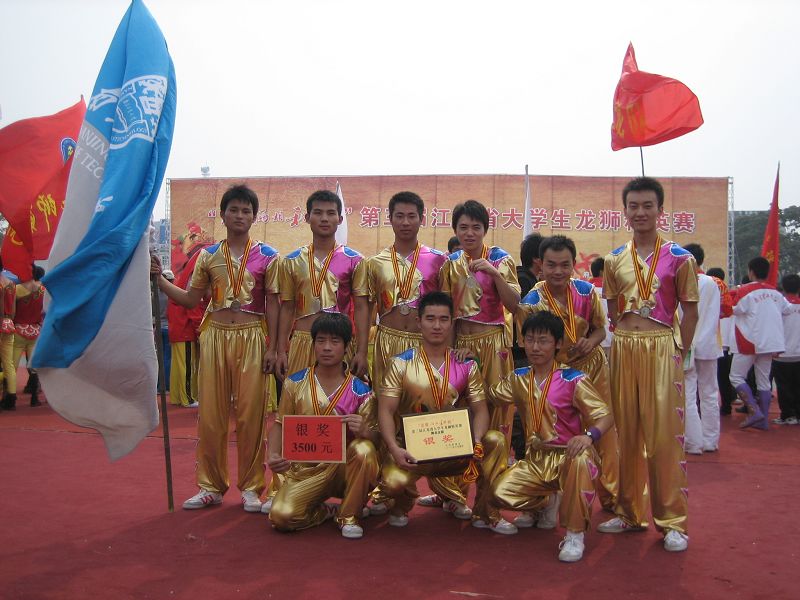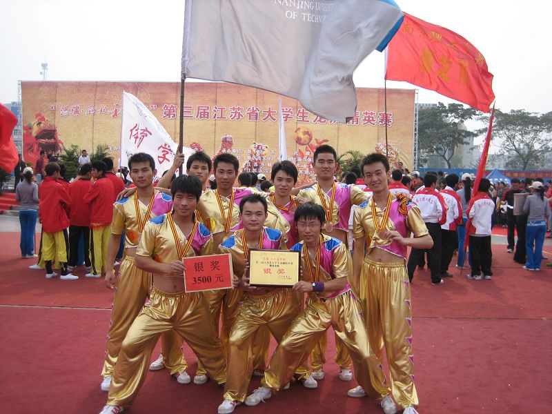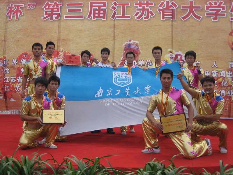 10月9日,由江苏省社会体育管理中心、徐州市体育局、江苏省员工体协高校工作委员会、江苏省龙狮协会主办,新沂市人民政府承办的“汤沟·两相和”杯第三届江苏省老员工龙狮精英赛在新沂市举行。本次比赛代表了江苏省龙狮比赛的最高水平,云集了来自南京理工大学、晓庄师范学院、南京林业大学等省内12所高校的17支老员工舞龙、舞狮代表队。在接到比赛任务后,杜寿高和王鸣骏两位教练员与队员们一起放弃了中秋、国庆以及周末等节假日时间开始训练。在训练中坚持高标准、严要求进行科学训练。在比赛中,校舞龙队在领队佘海文老师和教练员杜寿高老师带领下,队员们发扬顽强拼搏精神,克服种种困难夺得舞龙全能银奖和舞狮规定套路第四名的好成绩,并获得“体育道德风尚奖”称号,是历次参加该类比赛最好成绩。(来自于体育部)