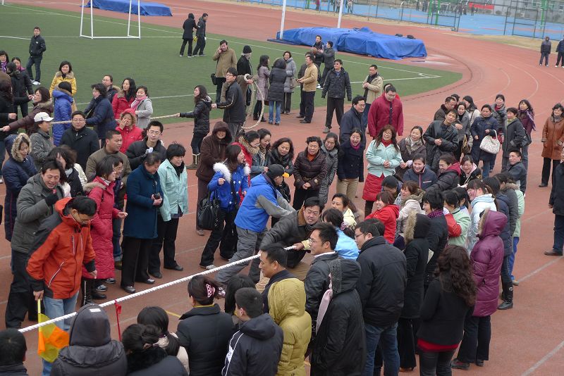为纪念三八国际劳动妇女节,由学校工会组织的拔河比赛在江浦校区田径场举行,体育部工会积极组织了教职工参加比赛,参加比赛的教职工分别是于丙德、於鹏、胡琴、李佳静、曹婧、汤赟、贡新烨、张海涛、薛敏、严燕等10人组成。分工会还成立了周爱东、陈晓妍、陈晓霞、王佳玥、李潇颋、钟 锵、成一祥等教师担任的拉拉队。最终体育部获得校教职工拔河比赛优胜奖,比赛结束后又与校部机关进行了友谊比赛。(来自体育部)