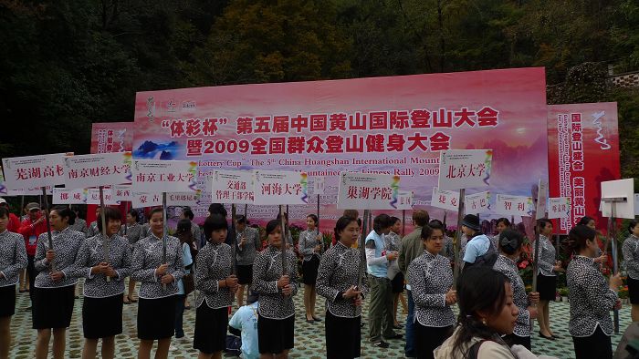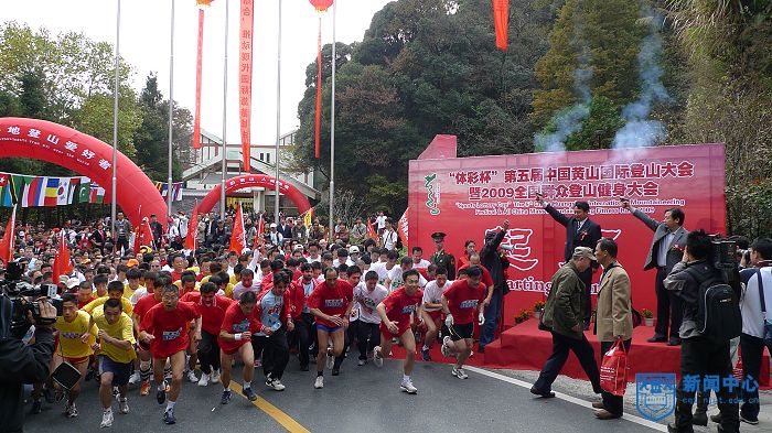 第五届中国黄山国际登山大会暨2009年全国群众登山健身大会于11月7日在黄山风景区举行,此次大会由国家体育总局登山运动管理中心、中国登山协会、安徽省体育局、黄山市人民政府主办,来自中国、美国、澳大利亚、巴基斯坦等38个国家和地区的1000多名运动员和登山爱好者参加了本次活动。登山比赛共设国外男、女组,国内青年男、女组,中老年男、女组,高校男、女组,登山全程约为9公里。