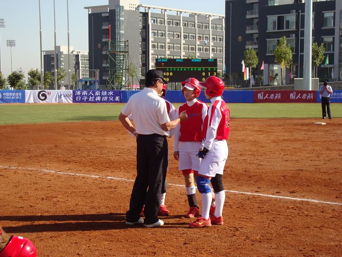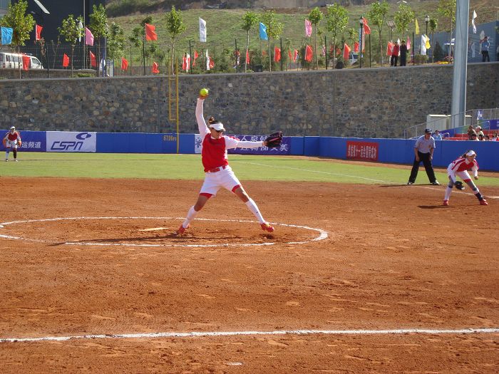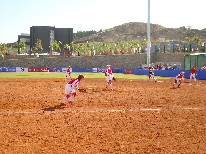 校江苏垒球队在“十一运”上首战东道主山东队获得胜利