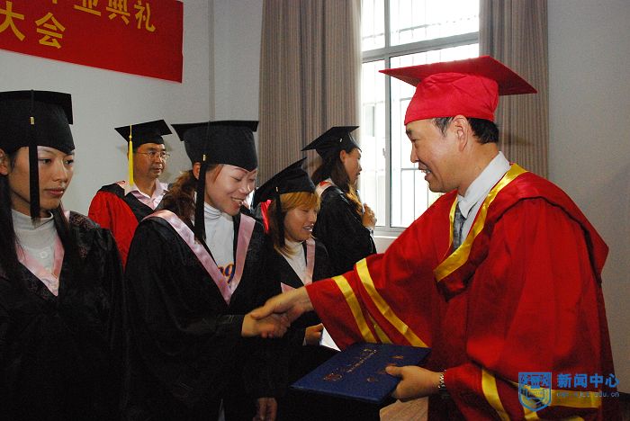 首先,经济管理公司党委副书记顾永东同志宣读了王兰等21名垒球队队员完成了工商管理专业教学计划规定的全部课程,准予毕业并获得管理学学士学位的决定,省体育局杨国庆副局长和朱跃钊副董事长共同为垒球班毕业生颁发毕业证和学位证书。
