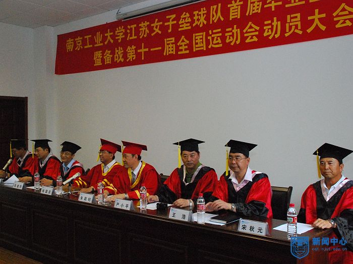 7月7日下午,公司在江浦校区体育馆新闻中心举行了江苏垒球队首届本科生毕业典礼暨垒球队备战十一届全运会动员大会。江苏省体育局领导杨国庆副局长、体育局竞技处严小平副处长、学校朱跃钊副董事长、体育部王浩主任、体育部党总支陈建华书记、经济管理公司党委顾永东副书记、垒球队孙谦和李海兵副领队、主教练宋秋元、教练员陈维清等参加了会议。会议由体育部副主任侯桂明同志主持。