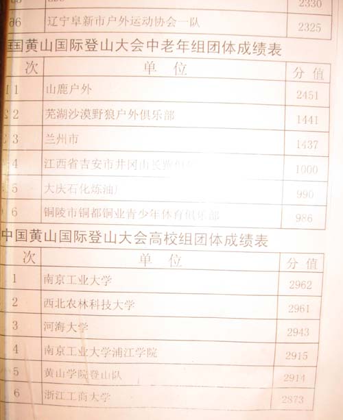 2008年全国群众登山健身大会暨第四届中国黄山国际登山大会8日在黄山风景区举行,700余名来自世界各地的登山爱好者齐聚黄山,一比高低。此次大会由国家体育总局登山运动管理中心、中国登山协会、安徽省体育局、黄山市人民政府主办,来自美国、法国、澳大利亚、尼日利亚、韩国等28个国家和地区以及国内20多个省区市、12所高校96支代表队共700多名登山爱好者参加本次登山活动。 登山比赛共设国外男、女组,国内青年男、女组,中老年男、女组,高校男、女组,登山全程为7公里。2008年全国群众登山健身大会以“全民健身与奥运同行”为主题,从4月开始一直延续到11月。到目前为止,已在陕西、山东、山西、河北、河南、四川、新疆、安徽等省区市先后举行。