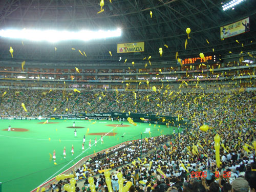 这是我们这次去日本主要想打的队伍,虽然我们是连续作战,可是大家表现出来的比赛热情是不容忽视的,就因为有这样的积极心态,才是我们最后3:1赢得比赛的关键吧。打完了比赛后,我们去了九州最古老的驿舍—门司港, 这是一个有许多西式建筑物,留传当地繁荣历史的游览景点。跟着我们就在附近的雅虎棒球场看了一场职业棒球赛,这个棒球场是日本唯一的室内棒球场,能够坐5万名观众我们称它—巨蛋!场内的观众席放眼望去是座无虚席啊, 在日本棒垒球是很流行的一项体育运动,所以当然是有很多观众的。这次出访的4场比赛,在看完棒球赛之后结束了,能够在国外打4场球是很不容易的,希望在这仅仅的4场球中能让我们学到别人一些优秀的东西。