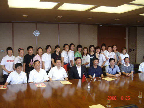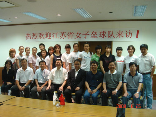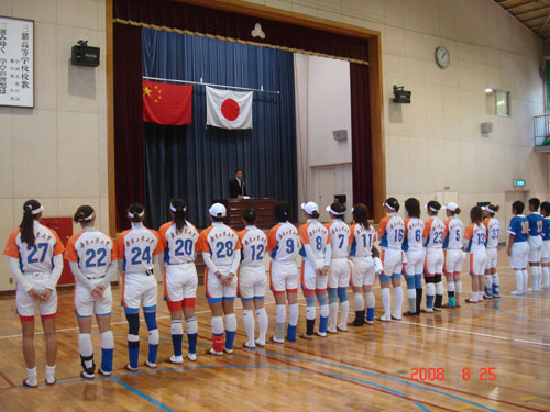 25日上午,我们去福冈县国际交流中心进行拜访,这也是我们的接待方,还去了福冈县的县厅,由福冈县政府副县长接待了我们。中午直接在三渚高等学校里面吃的饭,饭后参加了接待单位隆重的欢迎会,会后就上场地开始和她们进行比赛了,