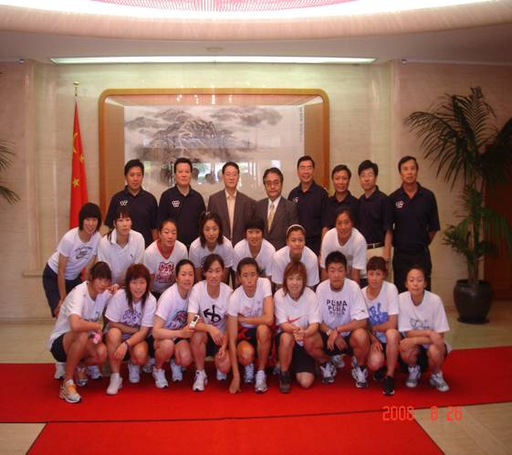 觉得好神圣啊,当然也有亲切感啊,因为这是我们中国人在海外的家啊,呵呵。从总领馆出来之后,我们就赶赴比赛场地准备与九州女子高中的比赛了,比赛打的很激烈,对方一分都没有得,但是在比赛过程中相互学习了很多好的技术动作,这是我们最主要的收获。晚上我们在福冈最受欢迎的综合性景点,商店等等的博多运城河逛了逛。