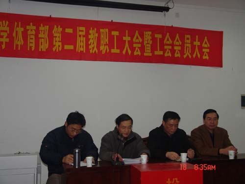 体育部分工会依据《中华人民共和国工会法》、《中国工会章程》、《工会基层组织选举工作暂行条例》及校工会关于分工会委员会换届改选的工作要求,体育部分工会制定了具体的选举办法和工作程序,并在2007年12月底下发了会议通知,对选举工作进行了布置。并于2008年1月18日上午,召开了第二届教职工大会暨工会会员大会,校工会主席杨兴南同志应邀出席了会议,并作了重要讲话。会议由体育部副主任,张天峰同志主持。