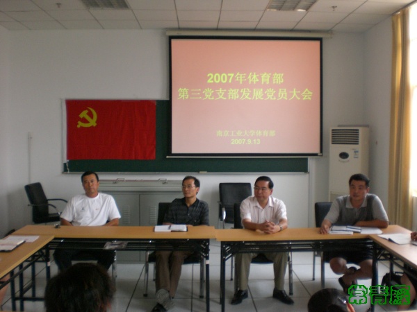 体育部第三党支部是由体育部办公室和校江苏女子垒球队党员组成的一个党的基层组织,十分重视做好对垒球班员工入党积极分子的培养、教育和考察工作,支部在严格按照党的组织发展程序和坚持发展新党员标准的前提下,于9月13日上午,在江浦校区体育综合馆报告厅召开了支部党员大会,分别讨论接收了蔡协清、李玥、朱湘红三位同志入党。至此,垒球班已经有了5位员工党员,为第三党支部增添了新鲜血液。出席支部大会的有支部全体党员和垒球队入党积极分子,垒球队主教练宋秋元同志,体育部主任、垒球队领队王浩同志应邀出席了支部发展新党员大会并先后发言,对新党员提出了殷切的希望。