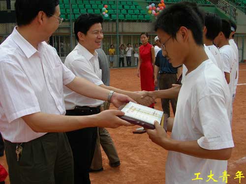 比赛结束后,前来参加“中国老员工棒垒球训练基地”挂牌仪式的嘉宾和领导、校垒球工作委员会全体成员为获奖运动队和运动员颁奖。